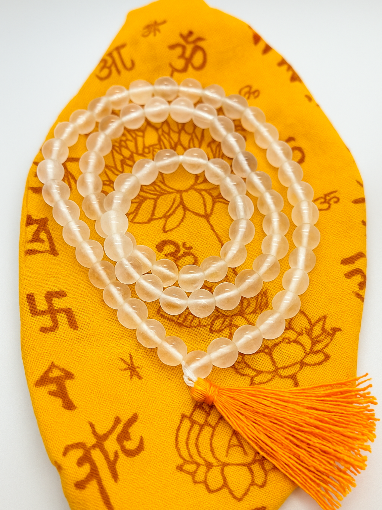 • Beads:108 + 1 (Guru bead) natural Clear Quartz (Sphatik)